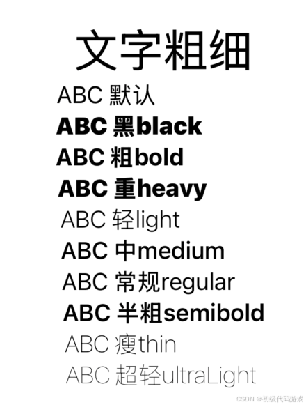 Text("ABC 超轻ultraLight ").fontWeight(.ultraLight)