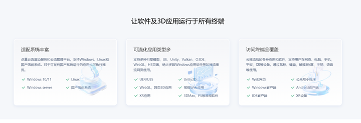 另外在部署和使用流程方面也非常简单快捷,以点量实时云渲染为例,主要是通过三步来实现的部署到使用: