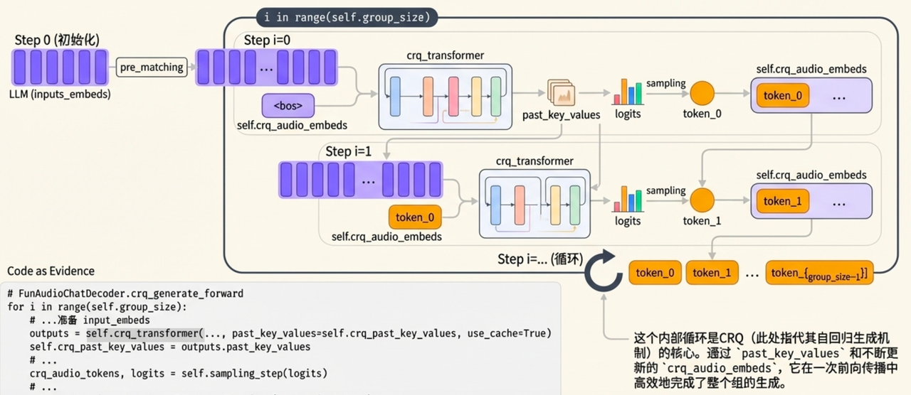 - CRQ Transformer模块,自回归迭代n次。 (n=Group size)