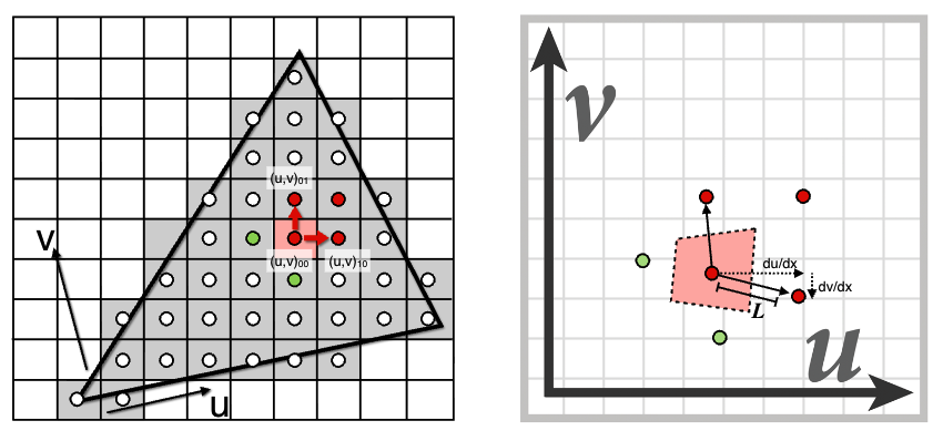 1、利用相邻屏幕样本的纹理坐标估算纹理覆盖范围。
