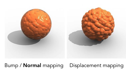 2️⃣ 位移贴图(Displacement Mapping):与凹凸贴图使用相同纹理,但会实际移动顶点位置,是更高级的细节表现方法。