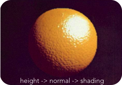 流程:纹理存储高度信息→通过高度计算法向量→参与着色。