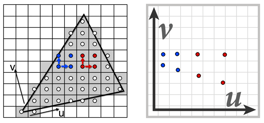 - 可插值属性:位置、纹理坐标、颜色、法向量、深度、材质属性等;