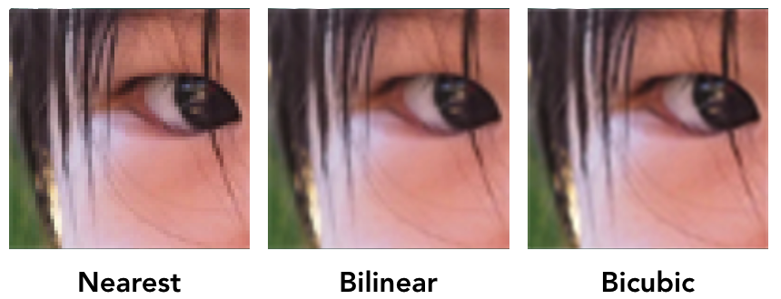 三种常用的纹理放大插值方法包括:最近邻(Nearest)、双线性(Bilinear)、 双三次(Bicubic)。
