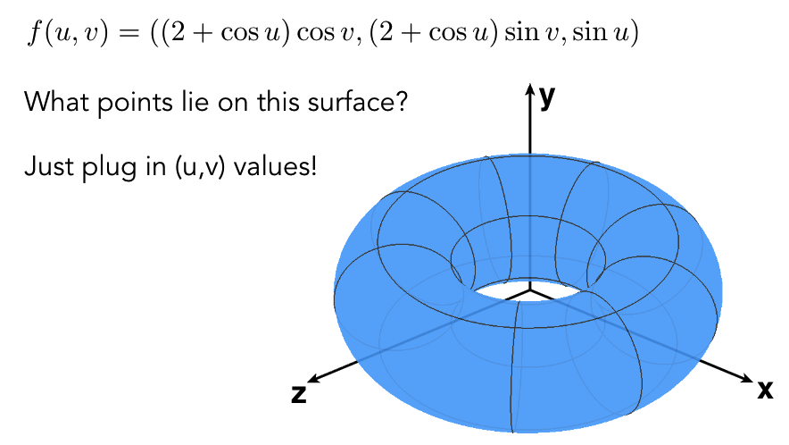 优势任务:采样(直接代入参数 (u,v) 即可获取表面点)。