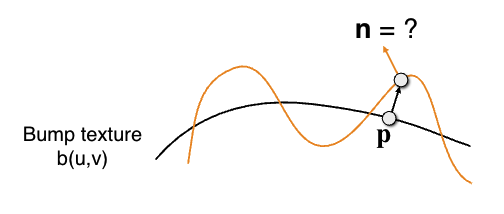 3D 场景:原始法向量 n §=(0,0,1),导数 dp/du=c1・[h (u+1)-h (u)]、dp/dv=c2・[h (v+1)-h (v)],扰动后法向量 n=(-dp/du, -dp/dv, 1)(归一化),注意:此计算基于局部坐标系(HW3 的 FAQ 会详细说明)