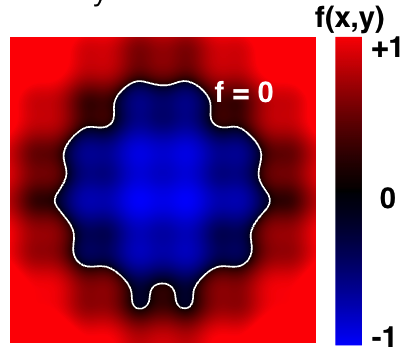物理模拟中的水平集:水平集编码气液边界的距离。