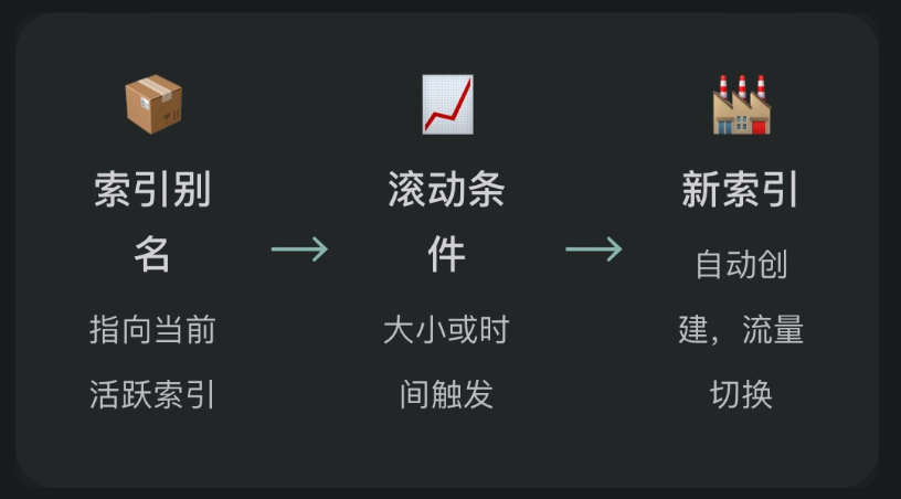 时间),当达到阈值时,系统会自动创建新索引,并将写入流量切换到新索引,而旧索引则变为只读。