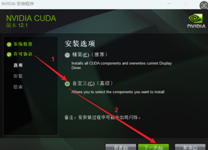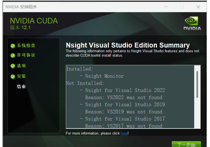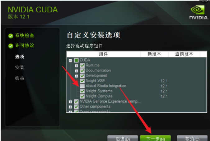 若计算机已安装与当前CUDA版本兼容的Visual Studio Integration文件,或通过单独安装Visual Studio插件等方式完成了CUDA支持的集成,此时在安装CUDA过程中勾选"Visual Studio Integration"选项,可能因冲突或重复安装引发问题。