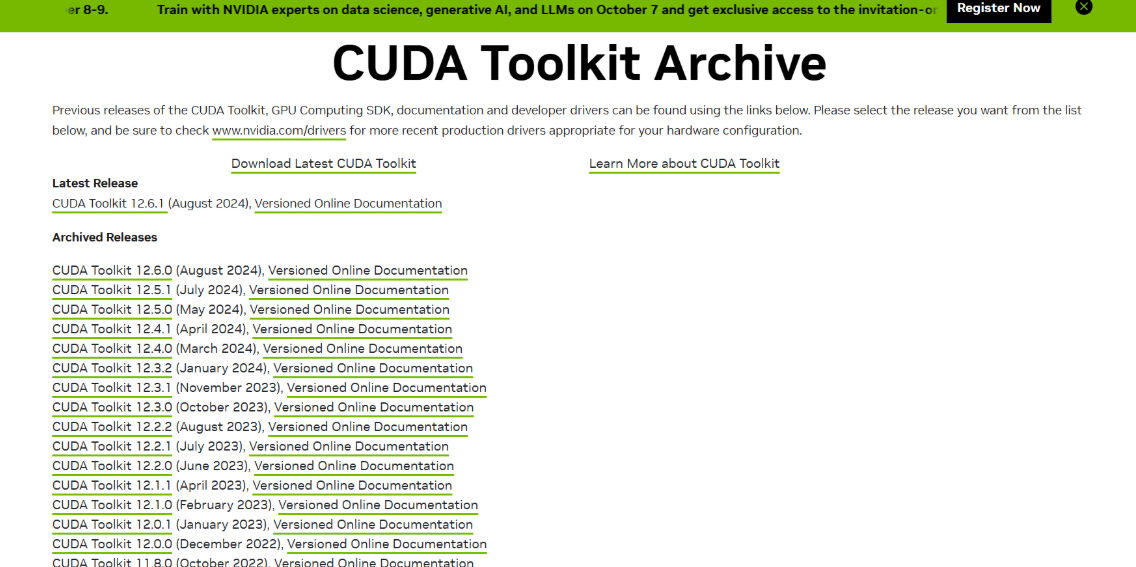得到下列画面,此时其内有各个版本的CUDA,选择尽量低于电脑版本的,防止有过高的版本不稳定的情况。