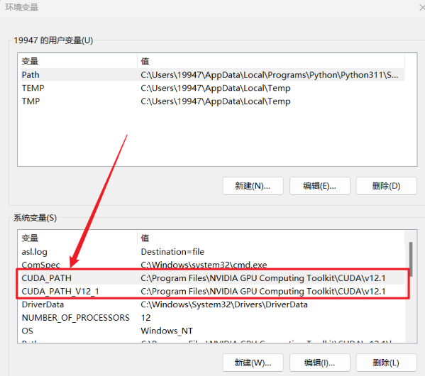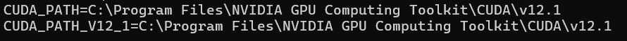 或者在命令提示符内输入命令set cuda查看环境变量