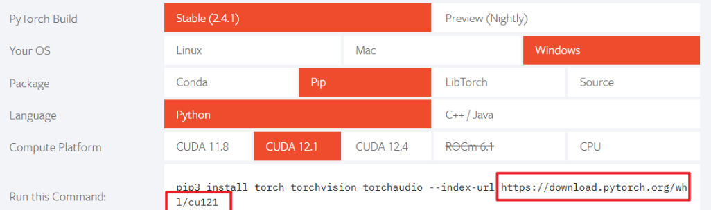 重复上述安装torch的步骤即可,选好版本号