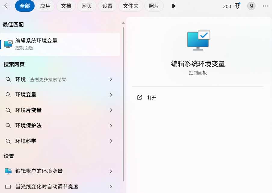 1、 直接在搜索栏搜索环境变量