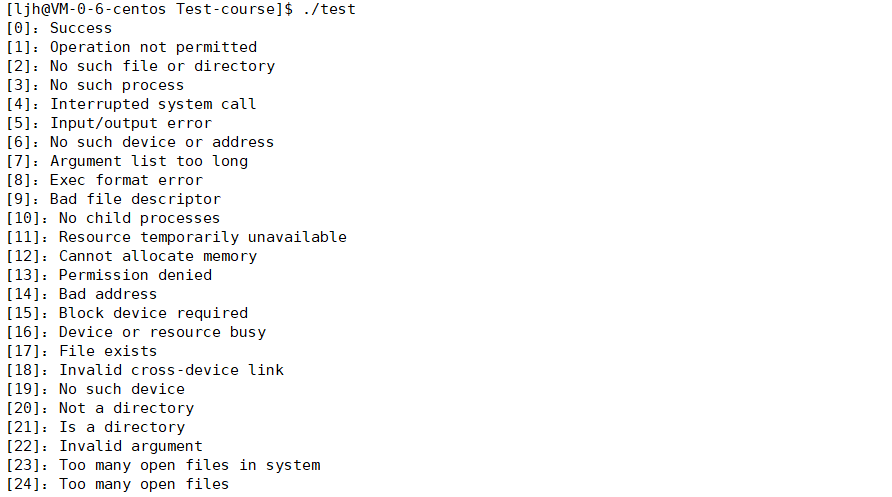 这是我通过strerror函数打印了当前系统对应的错误码描述: