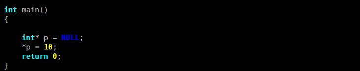 对空指针进行解引用是非法操作,会触发系统的内存保护机制,系统会发送SIGSEGV信号强制中断程序 ------ 此时程序未执行到return 0,属于 "被动终止",是典型的异常终止。