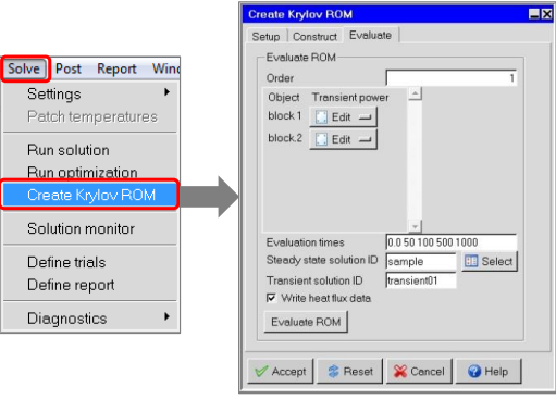 选择要作为输入而包含的对象;运行稳态解决方案;创建Krylov ROM