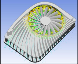 输入完整的叶片模型并定义相应的转速;相比于理想的风扇模型,提供了更精确的流体漩涡和风扇叶片几何效应的模拟