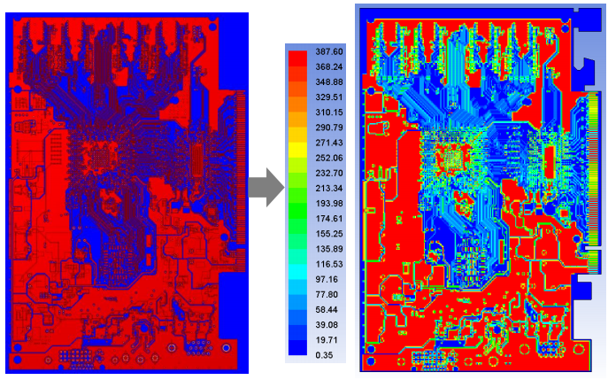 将Icepak的温度图转移到Slwave,在空间上更新材料特性(温度相关)。DC IR drop分析将根据新的材料性能再次运行。