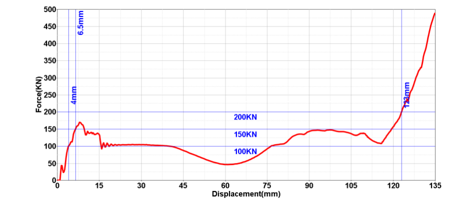 电池挤压过程中的力与位移曲线图表展示