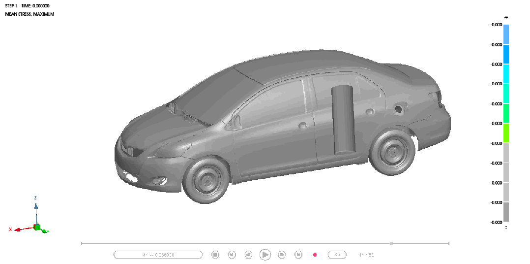 **核心输出量化:**B柱/门槛梁变形量(精度±0.5mm,评估车门框侵入乘员舱风险),门锁机构运动干涉动态可视化(锁定锁舌与锁扣的0.1mm级卡滞过程);