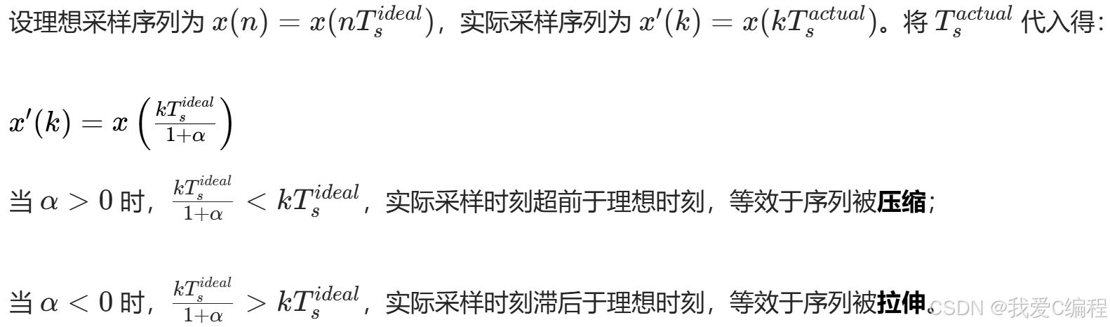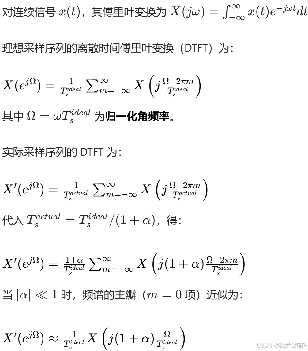 采样率偏差的本质是离散时间序列的时域尺度变换,具体影响分为时域和频域两个维度: