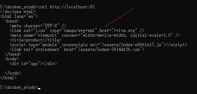说明:curl 命令测试 Docker 宿主机访问容器服务原理。看到前端页面,访问成功。