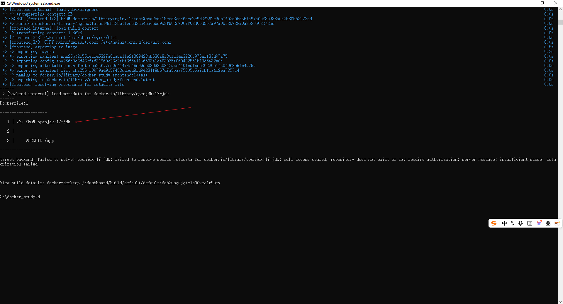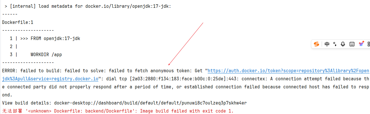 说明:有时候执行docker compose build frontend命令会出现一下报错信息,说明拉取镜像失败。
