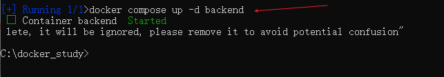 说明:启动 docker-compose 配置中的 backend服务,并在后台运行。