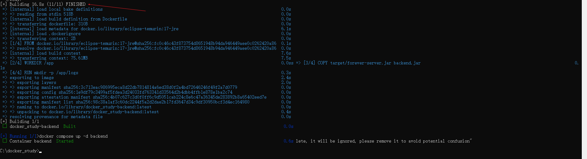 说明:backend服务构建 Docker 镜像,而不启动容器。