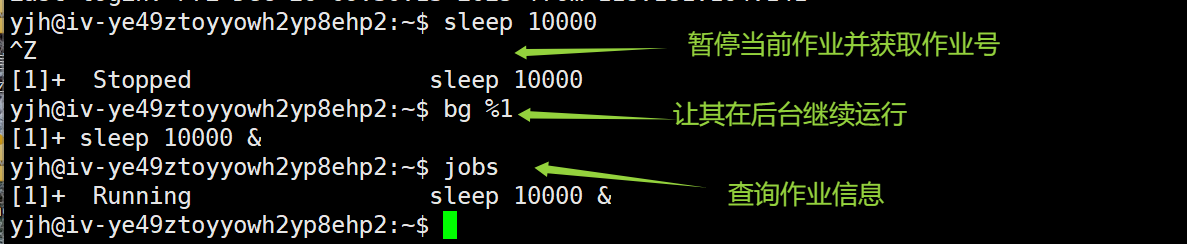 作业正在后台正常运行 | 执行 sleep 1000 & 后,作业处于后台运行状态 |