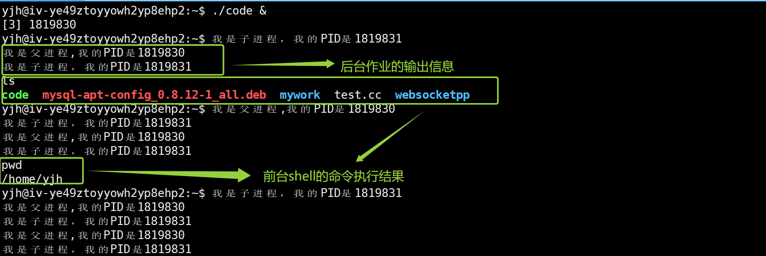 wait()系统调用挂起自身,等待前台作业结束,本质是一种同步等待机制,确保进程的执行顺序符合用户预期。 - 前台 / 后台的区分,本质是对终端 I/O 资源的分时复用:前台作业 "占用" 资源时,后台作业只能等待或静默运行;前台作业释放资源后,Shell 才会重新接管,让用户调度下一个任务。