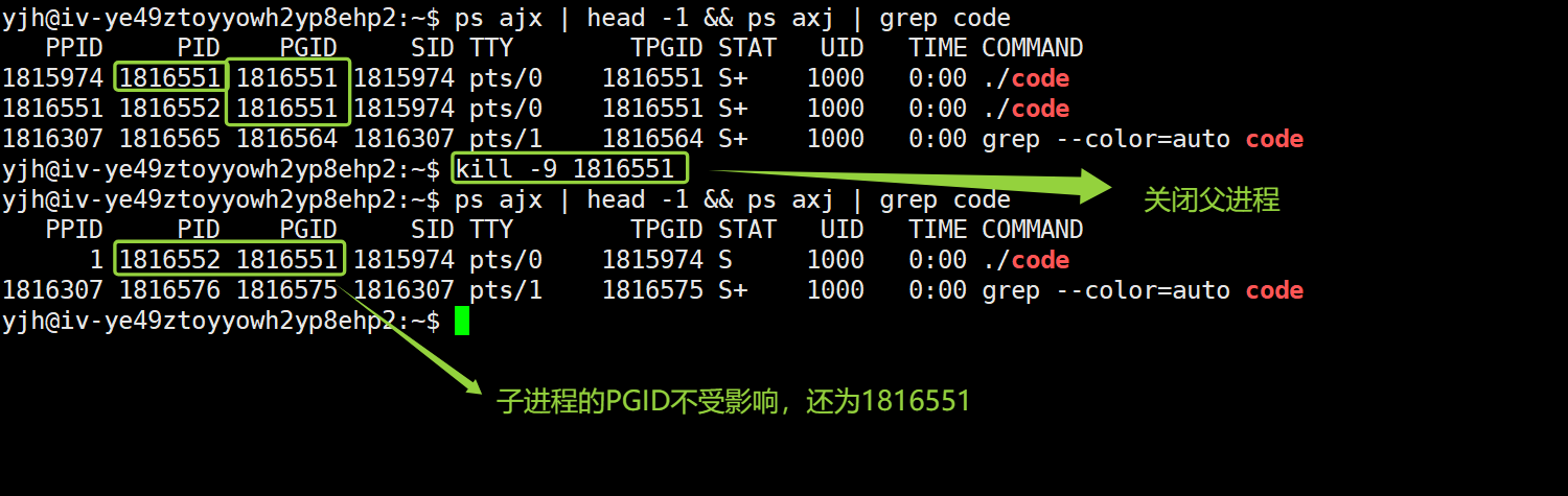 例如,在上面的例子中我们的程序创建了一对父子进程组成的进程组来完成用户下达的任务,这个进程组也可以理解为一个作业。