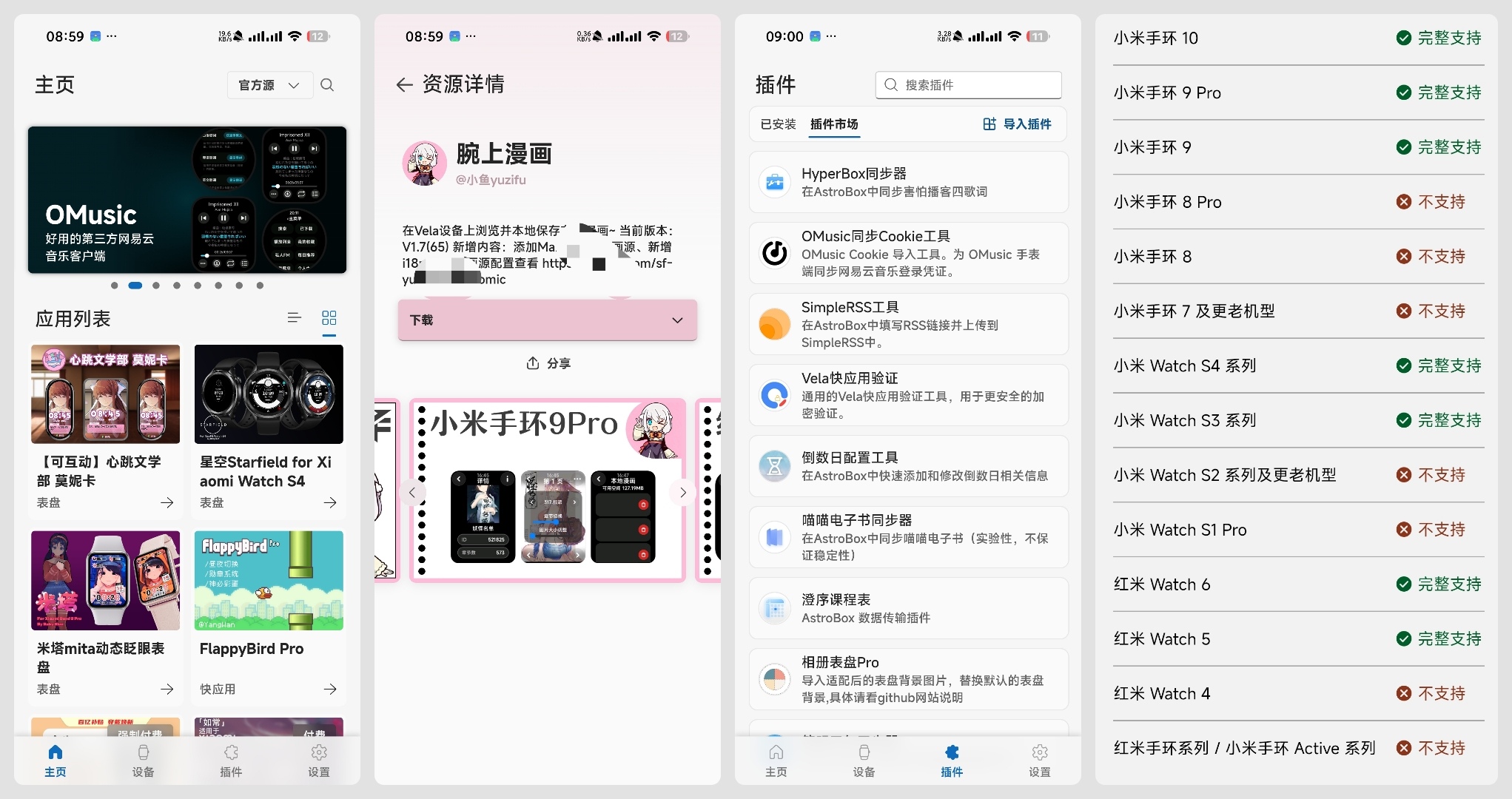 完整支持:小米手环 10、小米手环 9 Pro、小米手环 9、红米 Watch 6、红米 Watch 5、小米 Watch S4 系列、小米 Watch S3 系列