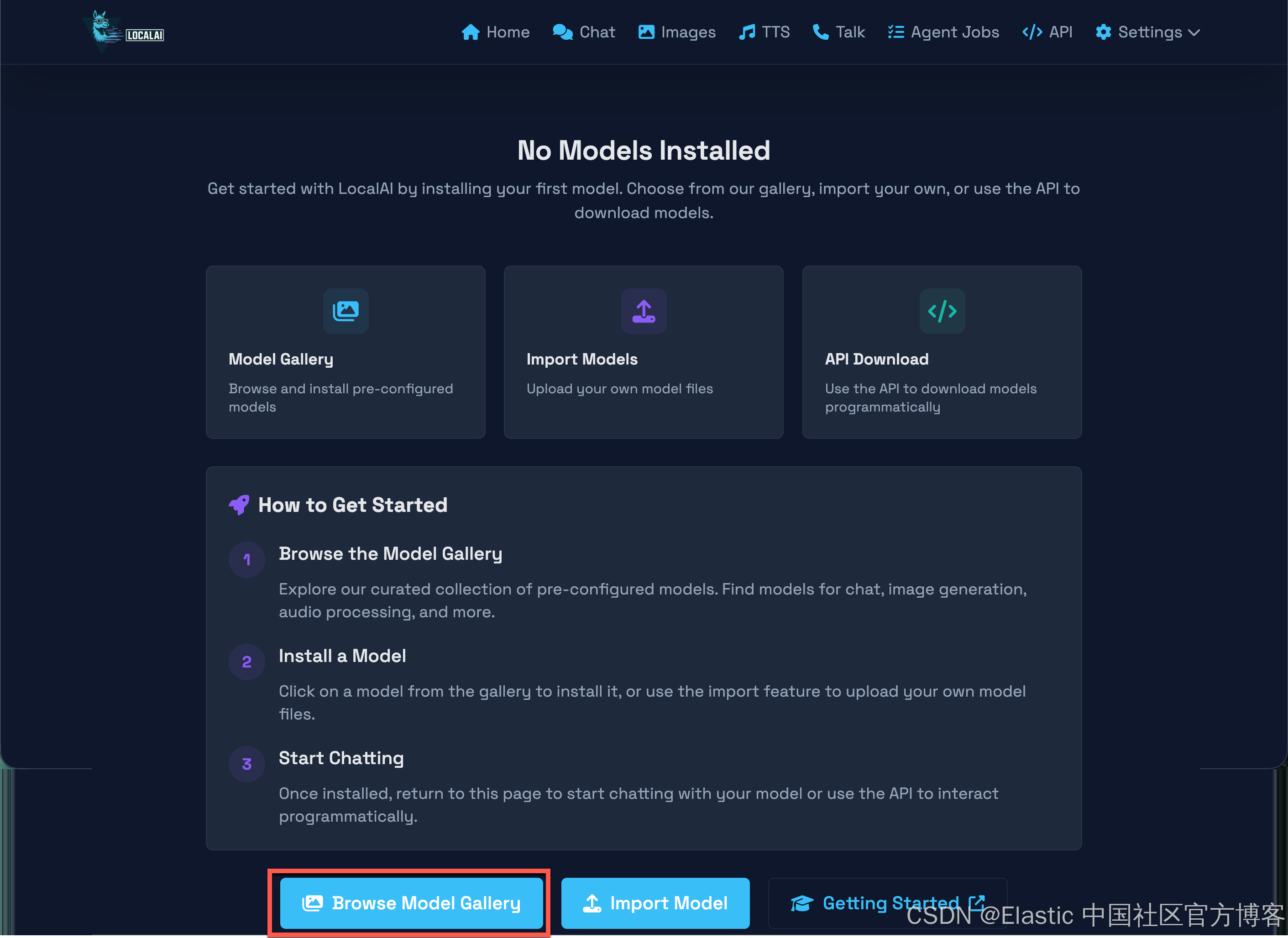 我们可以安装上面的步骤来安装所需要的模型。点击 Browse Model Gallary: