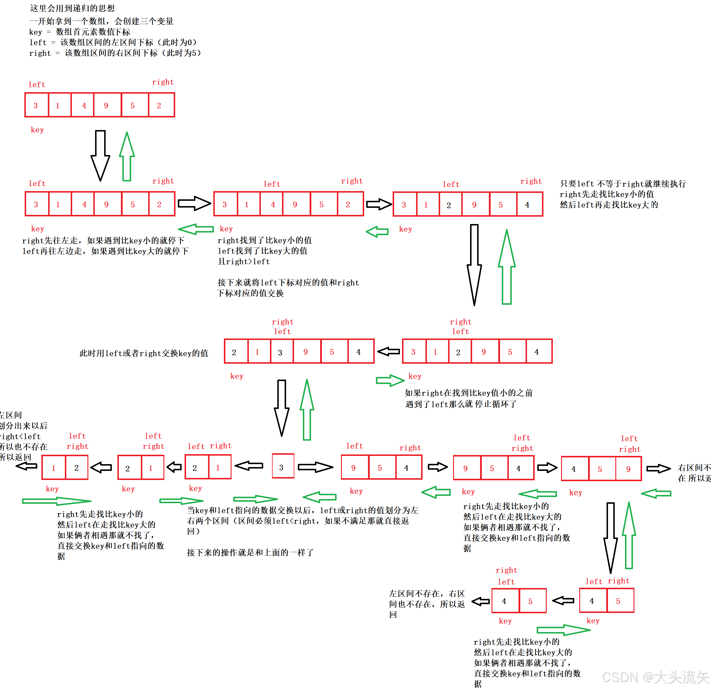 这就是非递归版本的快速排序,其实我们只需要掌握一种快速排序就可以,建议大家在"挖坑"和"lomuto"这两个版本选择一个即可