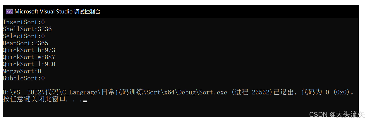10000000个数据下,希尔排序、堆排序、优化的快速排序递归版本(hoare版本、"挖坑"版本、"lomuto双指针"版本)