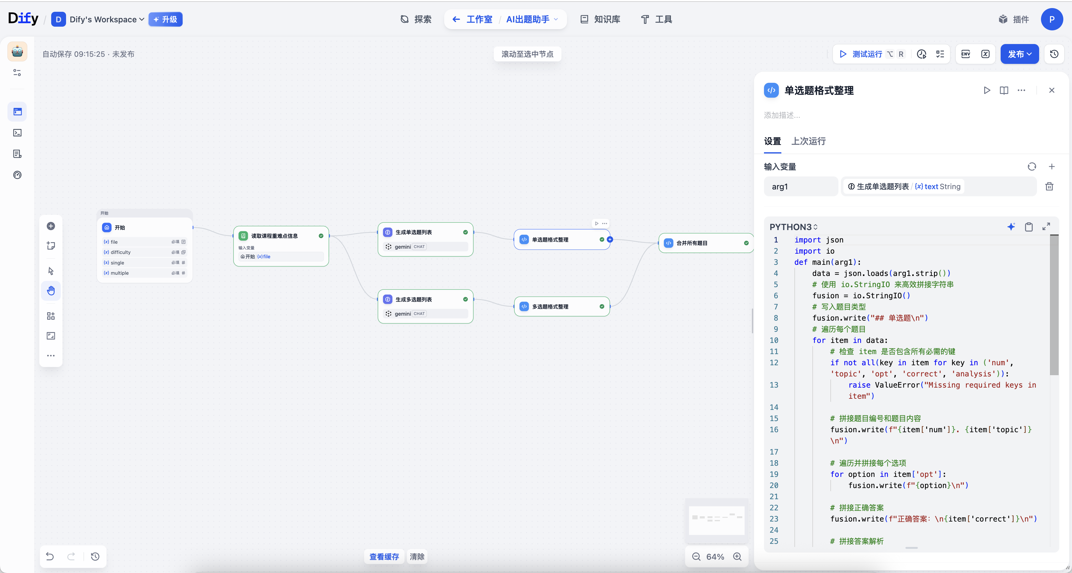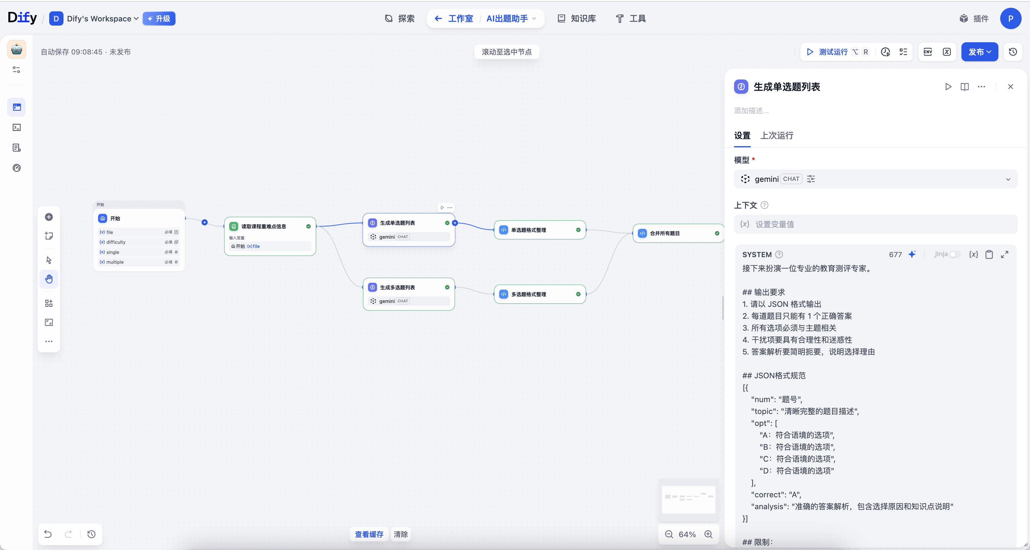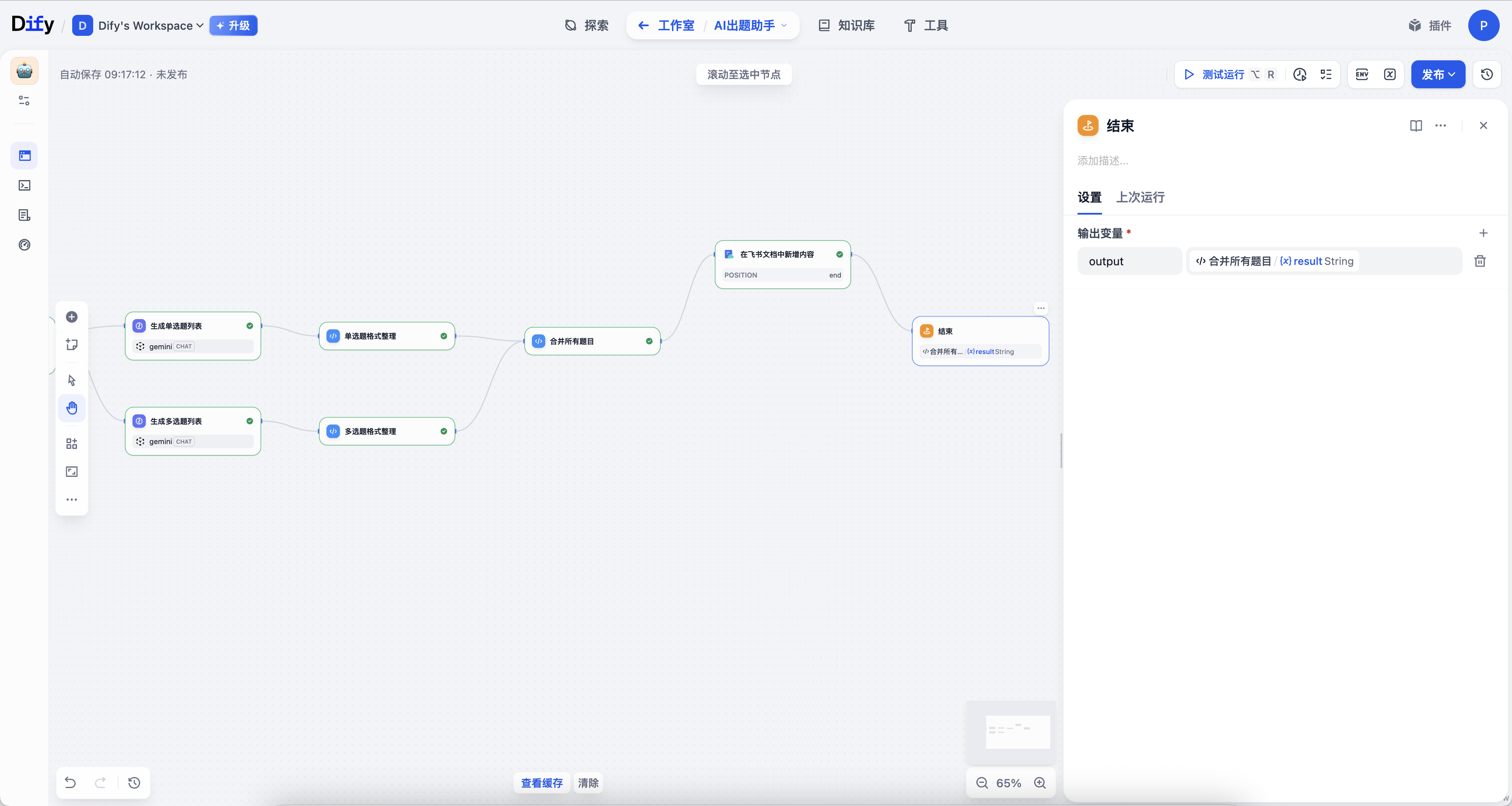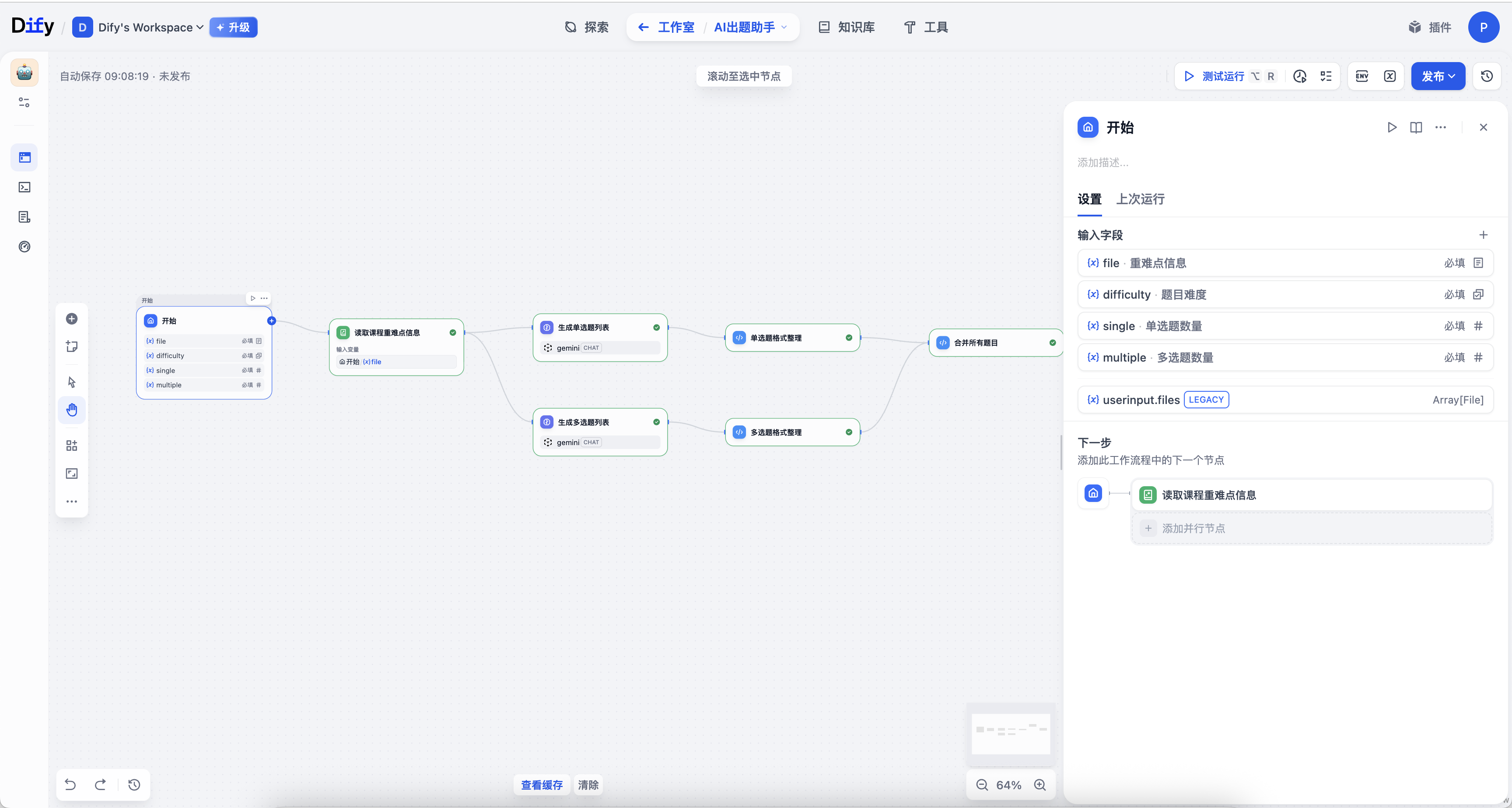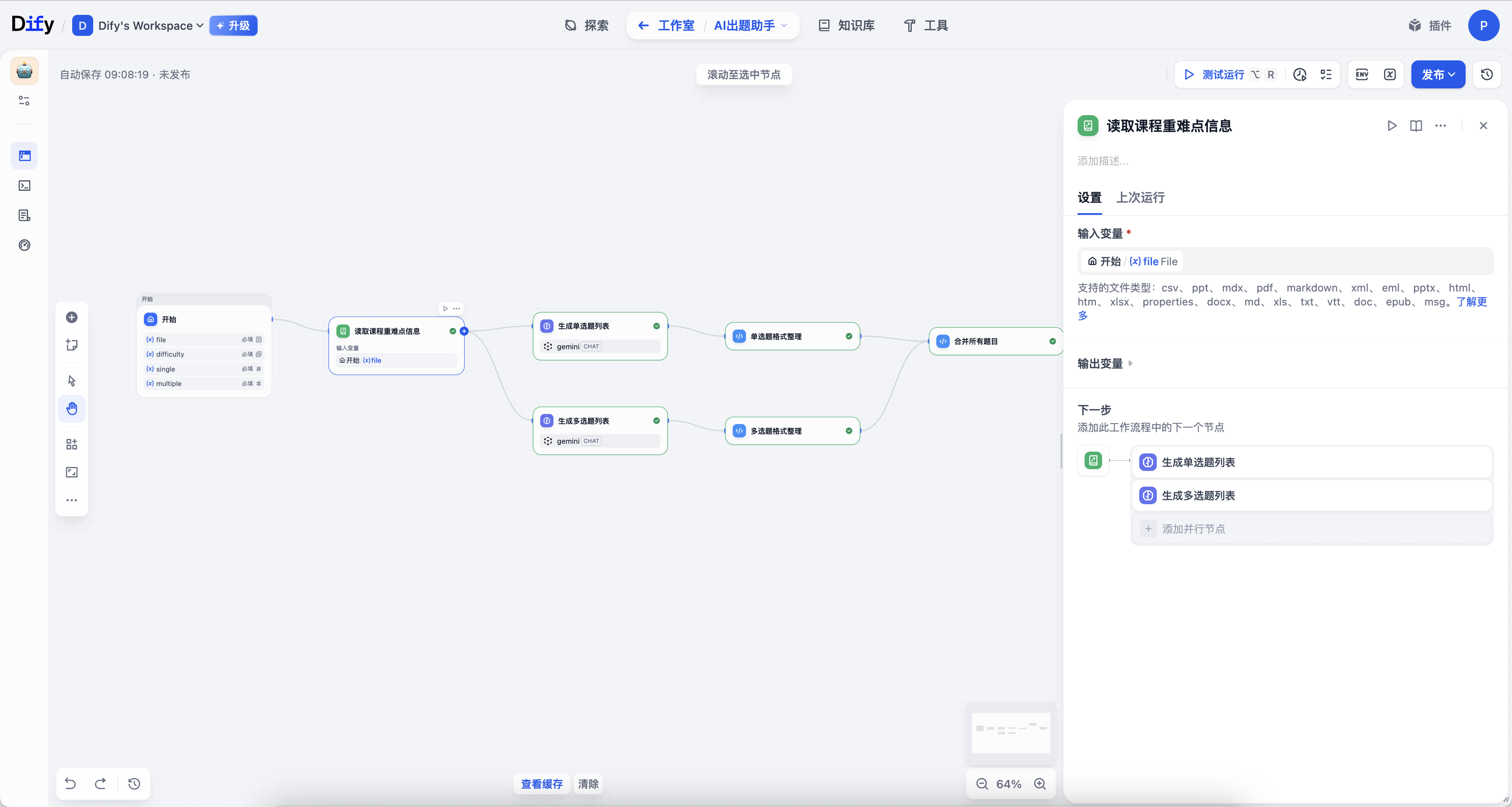 这节课我做了一条实用的工作流------能自动生成试题的 AI 题助。