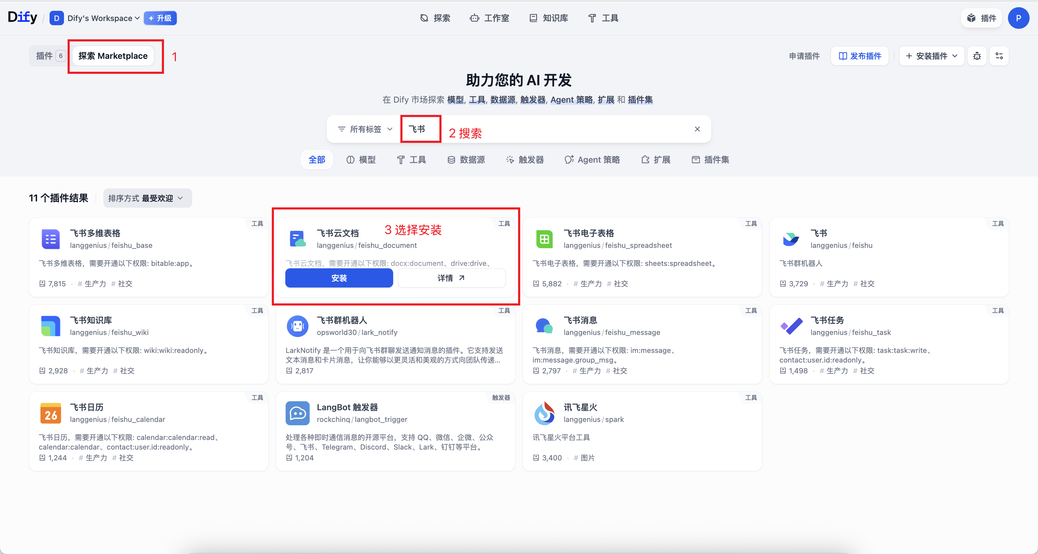 第一次在dify中使用飞书插件需要配置,下面我带大家一步步完成。