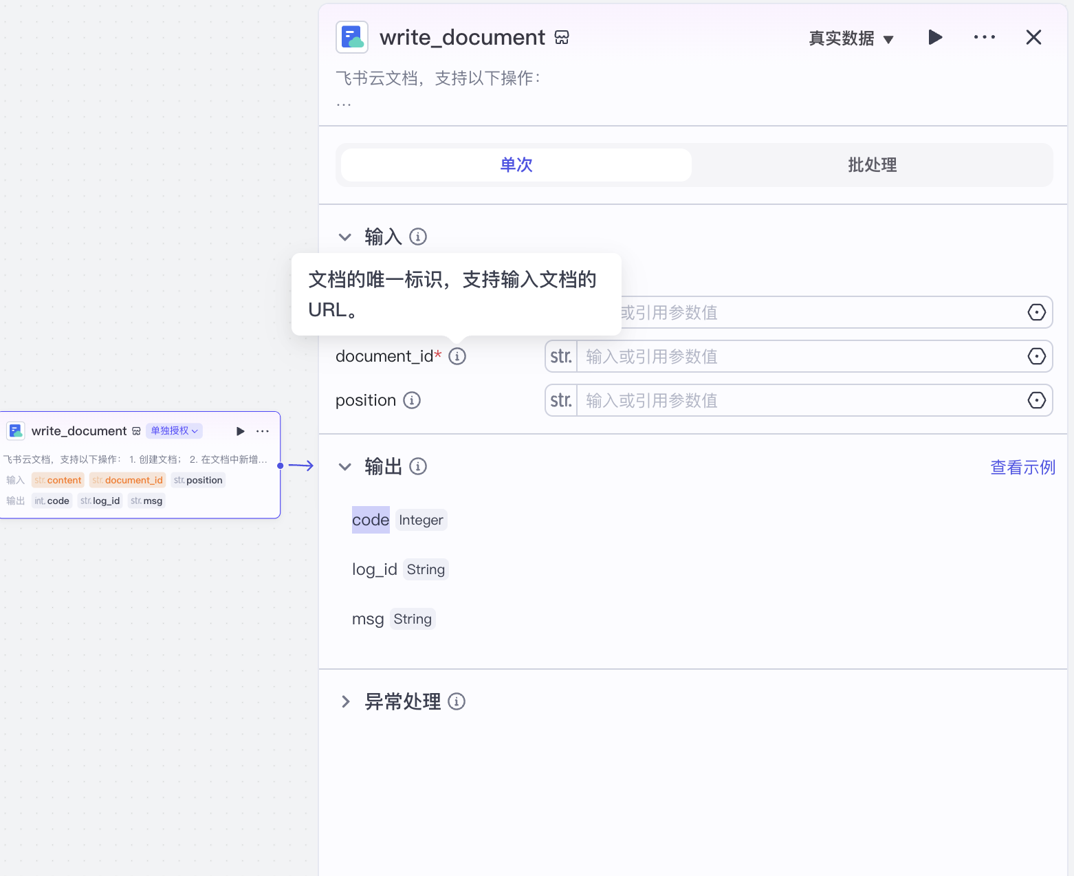 一键授权后,节点中输入文档url即可。