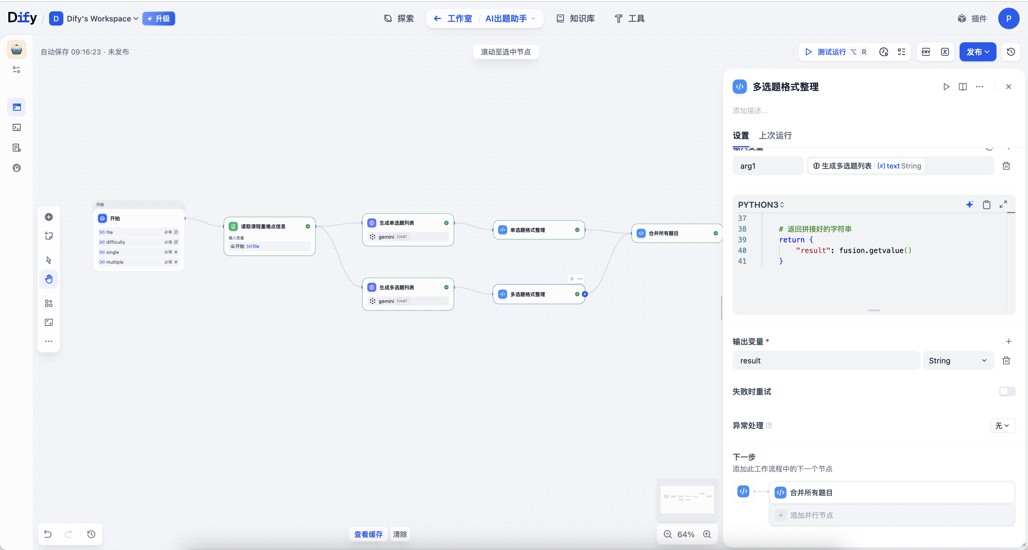 步骤5 & 6:格式化题目(代码节点)