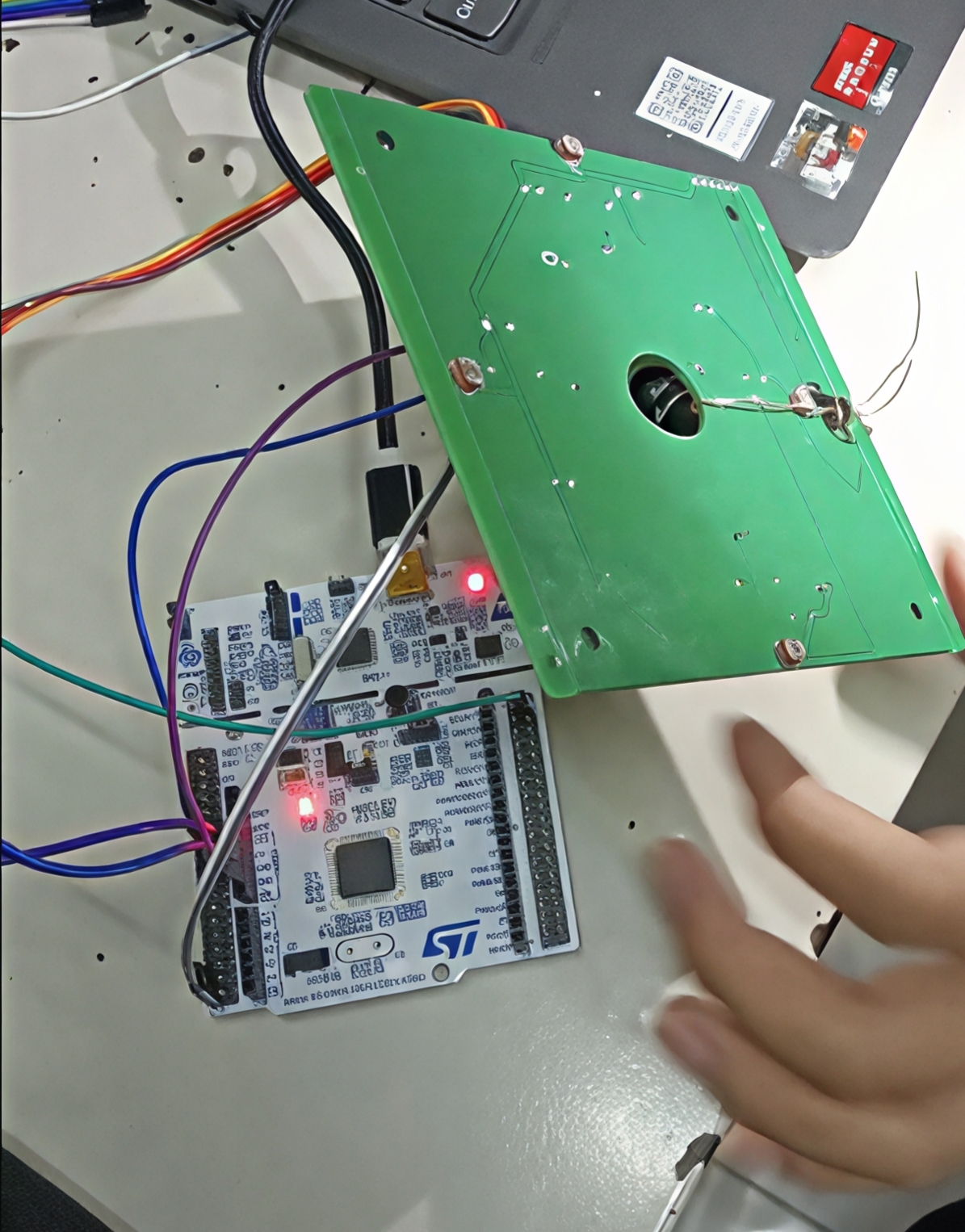 **闭环追踪:**基于误差信号驱动舵机执行机构。控制算法根据电压差的极性和大小,动态计算 PWM 脉宽,驱动舵机调整检测板角度,直至消除电压差,从而实现检测板始终正对光源的闭环追踪效果。