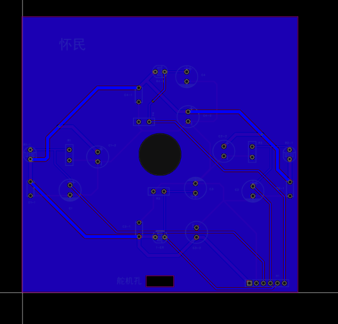 PCB 上的铜皮也是有电阻的。舵机工作时电流很大,如果地线很细(阻抗大),会在地线上产生电压降(地弹,Ground Bounce)。ADC 采集是参考地电压的。如果地电压因为舵机动作而跳变,采集到的光强数据就会剧烈抖动。大面积铺铜可以将地线阻抗降到最低,保证 0V 参考电位的纯净。同时,双面铜皮构成的屏蔽层也增强了系统抗环境电磁干扰的能力。