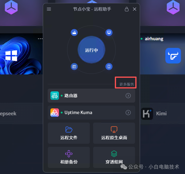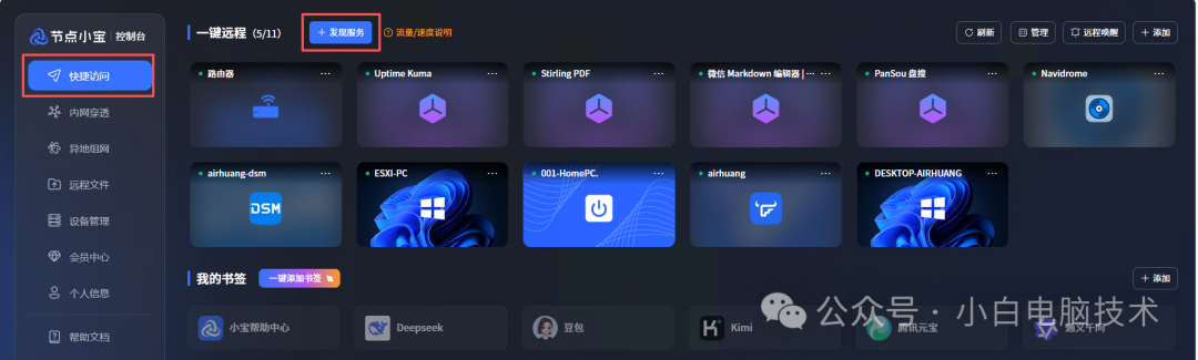 通过"中心节点",在节点小宝控制外【快捷访问】处还可以添加远程唤醒和局域网下其他设备的功能,比如: