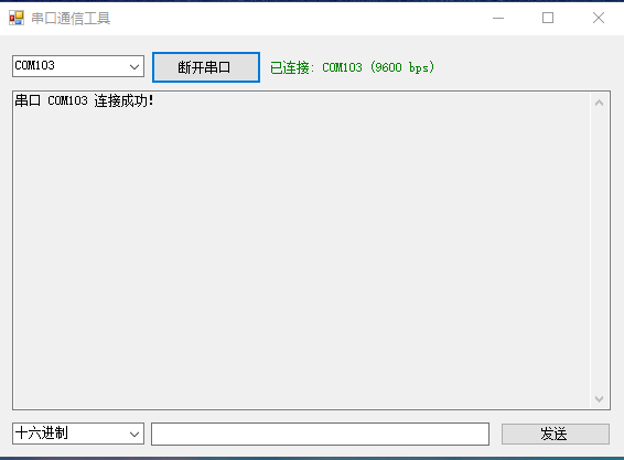 使用winform去实现最简单的数据发送与接收,获取串口之后点击连接串口,进行串口连接,在后续会显示连接的状态。串口的配置使用代码中写死的配置: