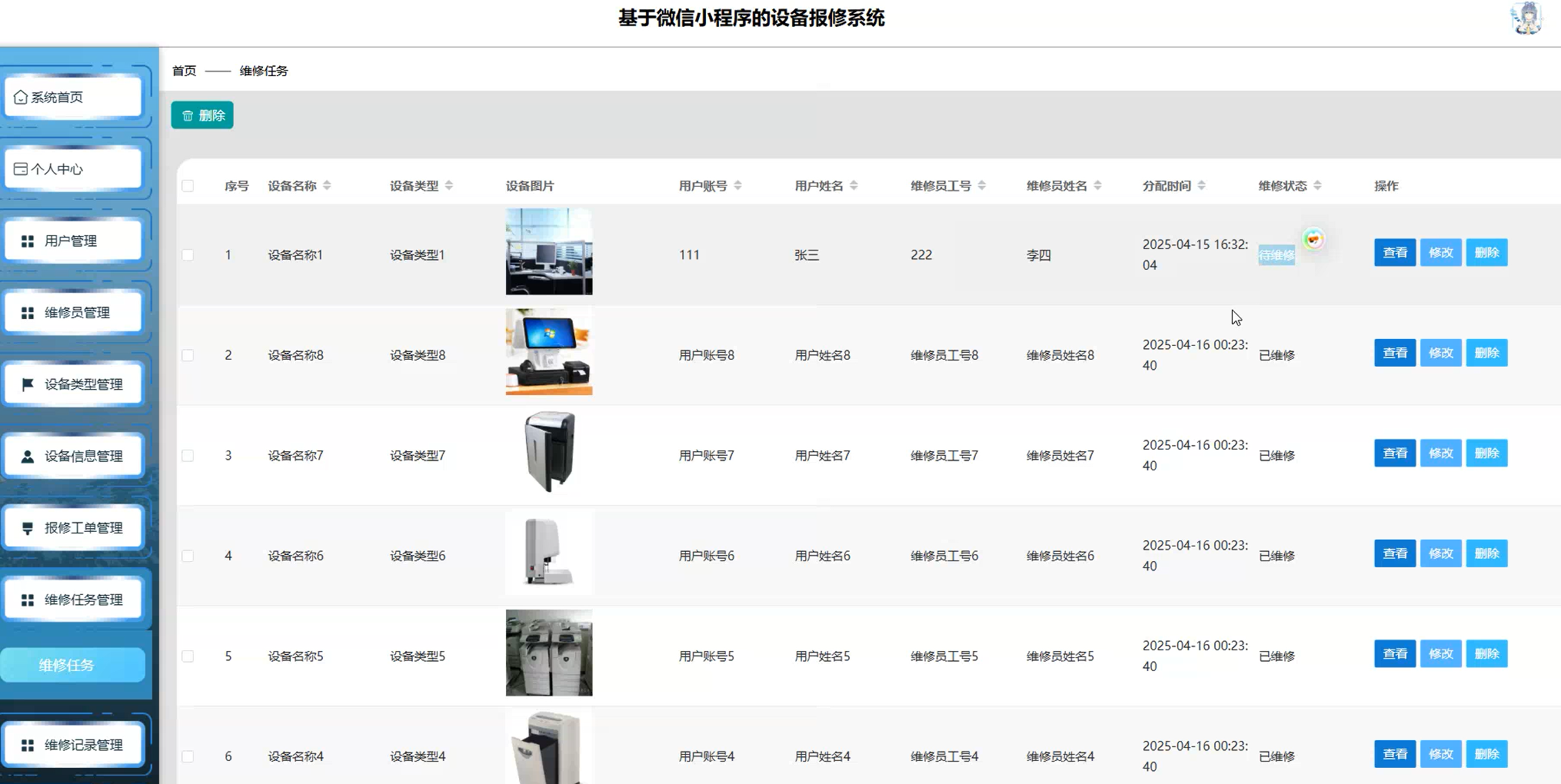 维修任务管理页面