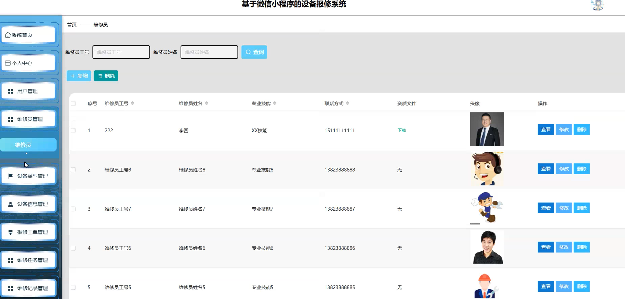 维修员管理页面