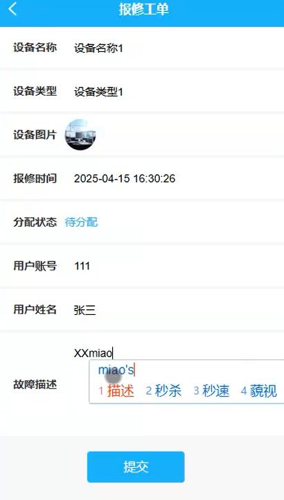 报修工单页面