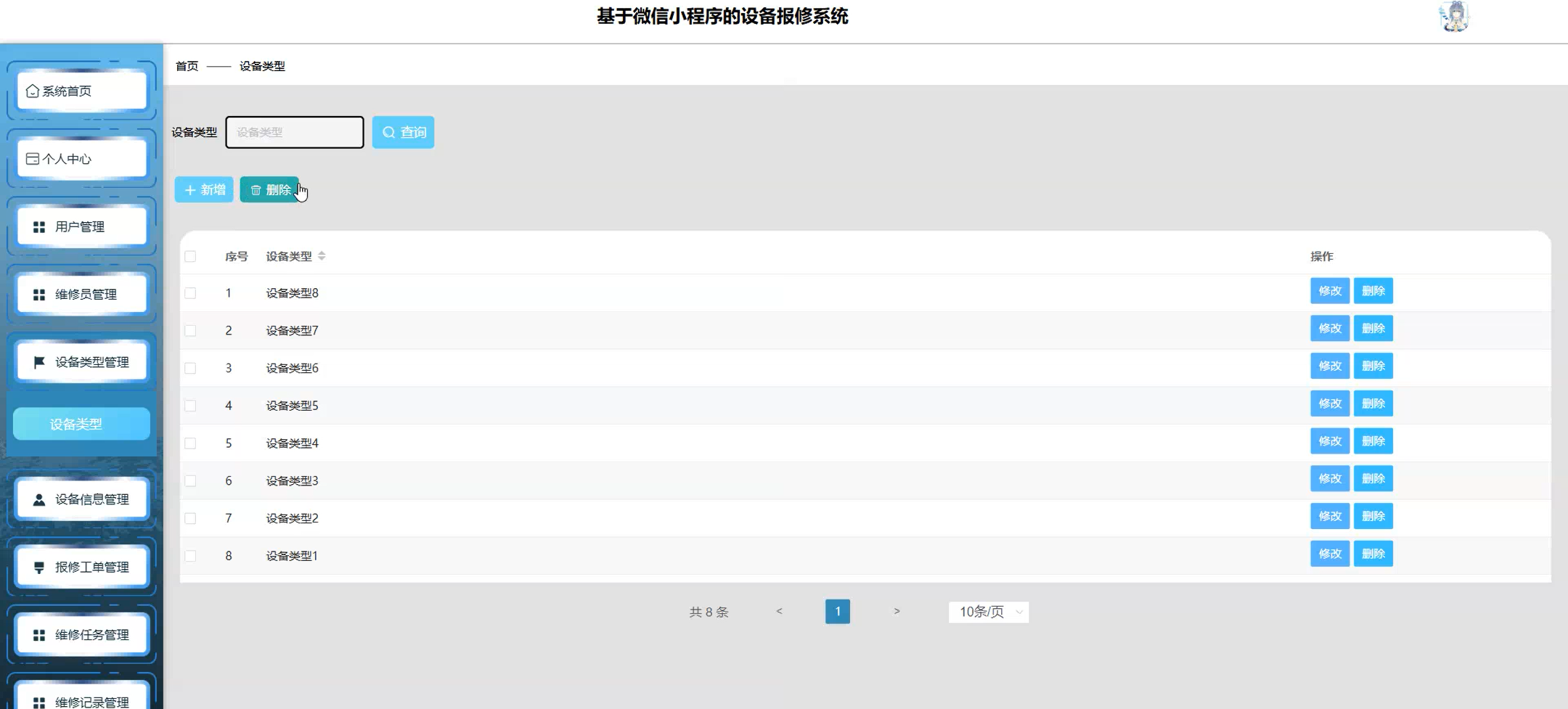 设备类型管理页面