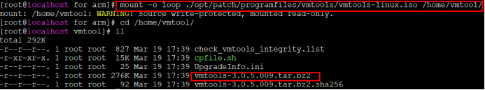 3、在虚拟机中执行如下命令解压uvp-vmtools-3.0.5-009.010.aarch64.rpm 后找到vmtools-linux.iso