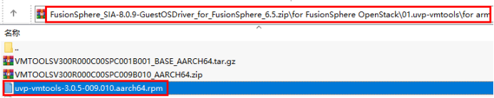 2、解压下载的安装包后找到uvp-vmtools-3.0.5-009.010.aarch64.rpm这个rpm包,上传到需要安装vmtool的虚拟机。